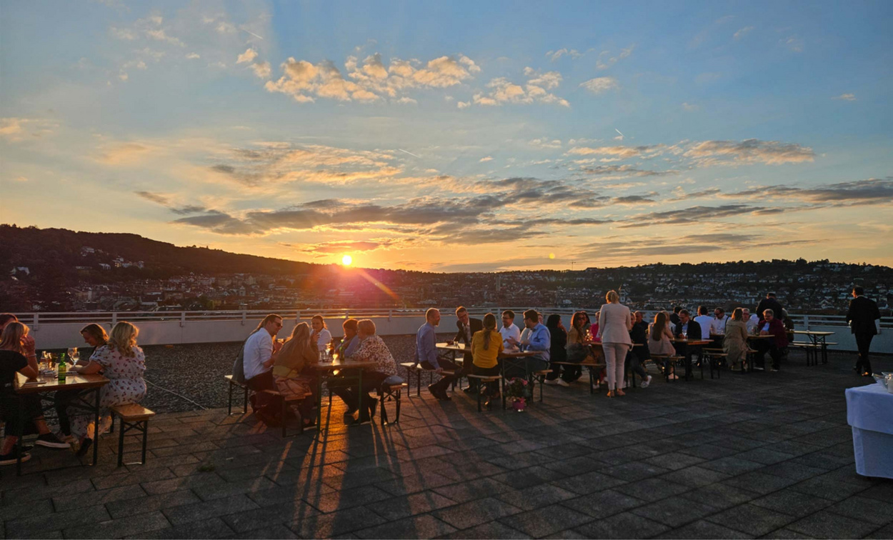 Unser jährliches Sommerfest findet in entspannter Atmosphäre statt. Es ist eine gute Gelegenheit, die Sonne auf unserer Dachterrasse zu genießen und sich auszutauschen. Wenn die kältere Jahreszeit eintritt, finden wir uns in der glanzvollen Stimmung unserer Weihnachtsfeier wieder, um das Jahr gebührend zu feiern und auf unsere gemeinsamen Erfolge anzustoßen.